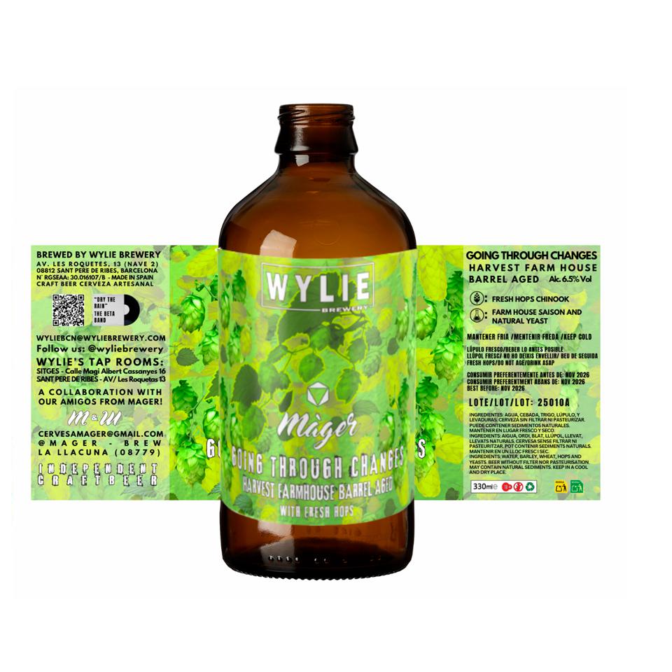 Curiosa e interesante colaboración entre Wylie y mager, una farmhouse o saison fermentada y madurada en barrica de roble y posterior dry hopping de lúpulo fresco de cosecha Chinook.